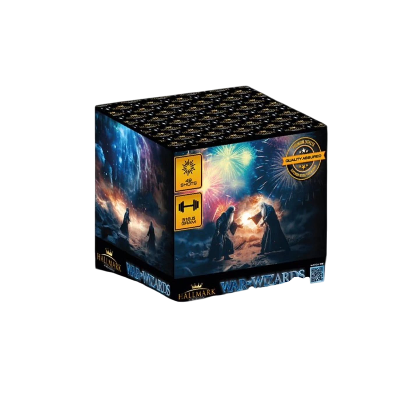 Enter a world of magic and mystery with War of the Wizards, the enchanting cake fireworks display from Hallmark Fireworks. Featuring 49 shots of spellbinding beauty, War of the Wizards offers an unforgettable experience that will captivate audiences of all ages.